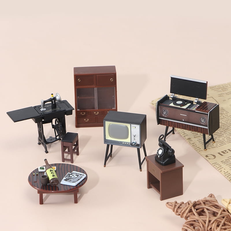 1 18 Dollhouse Miniature Furniture Set Sewing Machine Tv Cabinet Table Model Toy Walmart Com